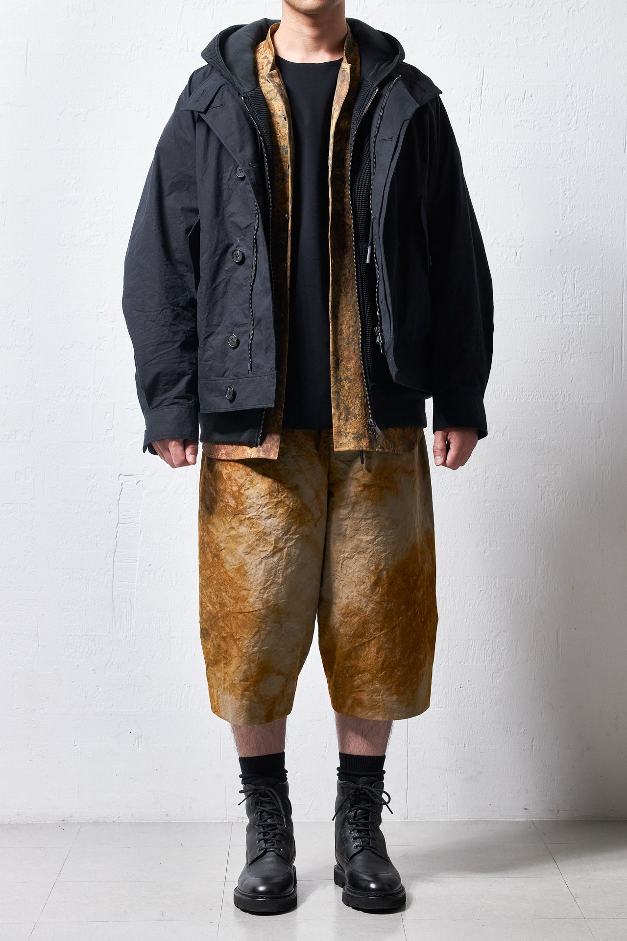 和紙のように乾いた表情とランダムなシワの入った生地感が、どこか和を感じさせる山内定番ア イテムです。