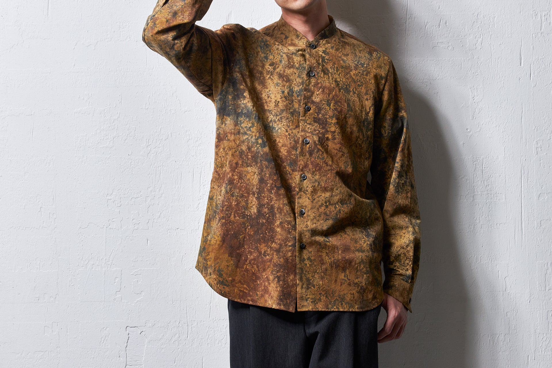yc41-261-ari/有松絞り・塩縮加工コットンリネンシャツ