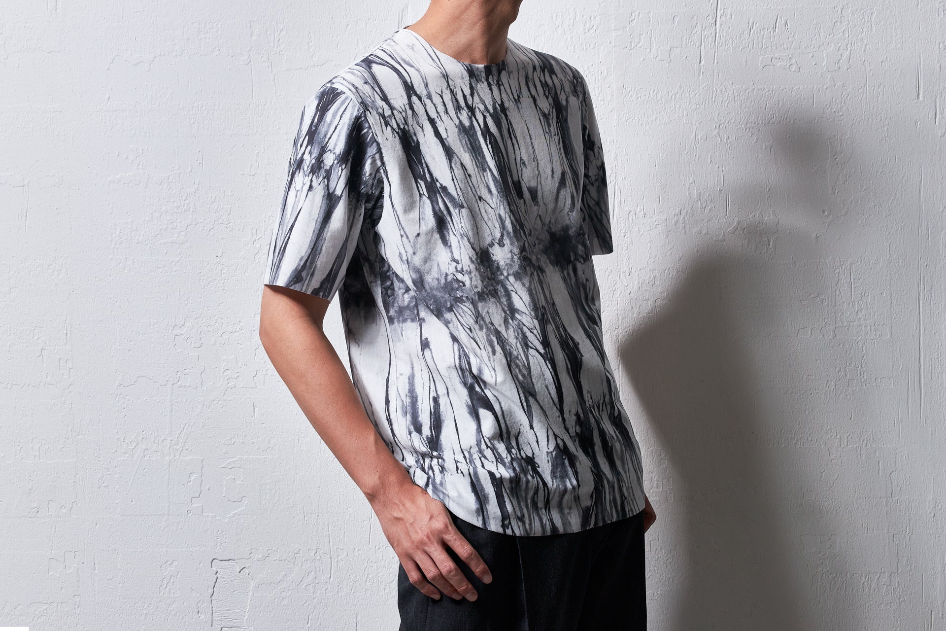 【入荷前】yc55-261-ari/有松絞り・強撚フリーカットポンチ・ショートスリーブTシャツ-arimatsu