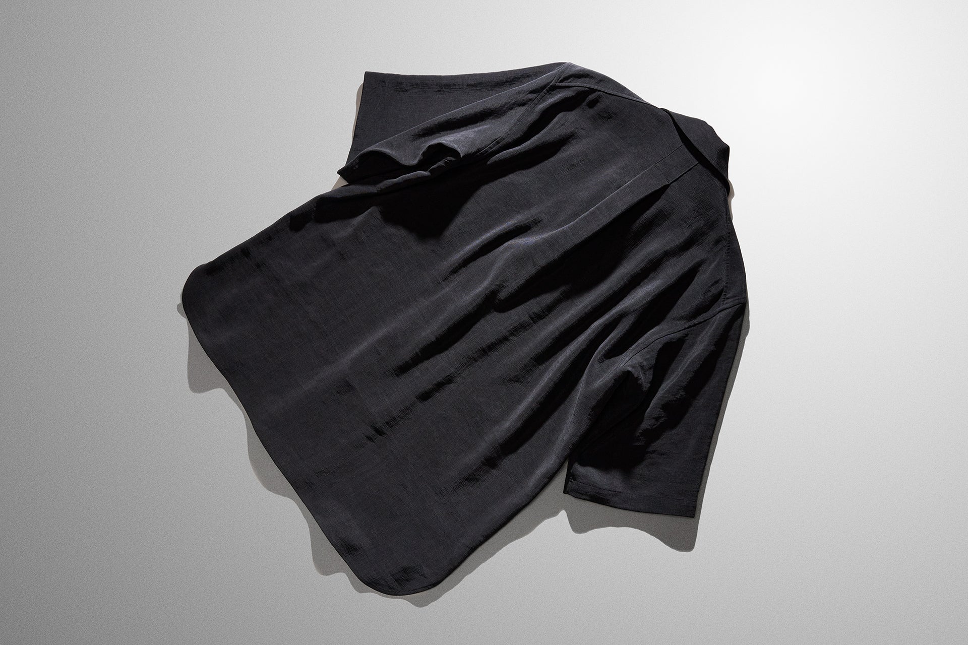 最高級の絹織物に、あえて表面を特殊な装置で強制的にスレを生じさせるスエード加工を施し、さらにバイオ加工により生地の張りを無くし、くたっとしたビンテージ風の表情に変化させています。
