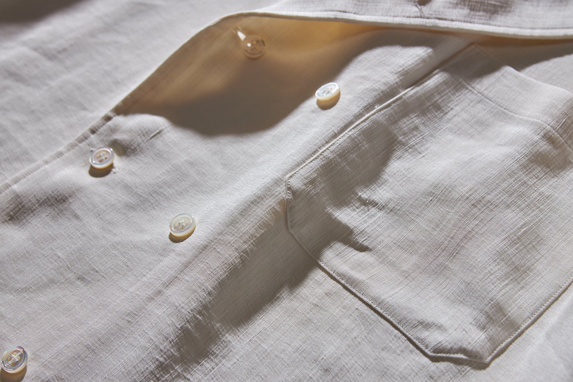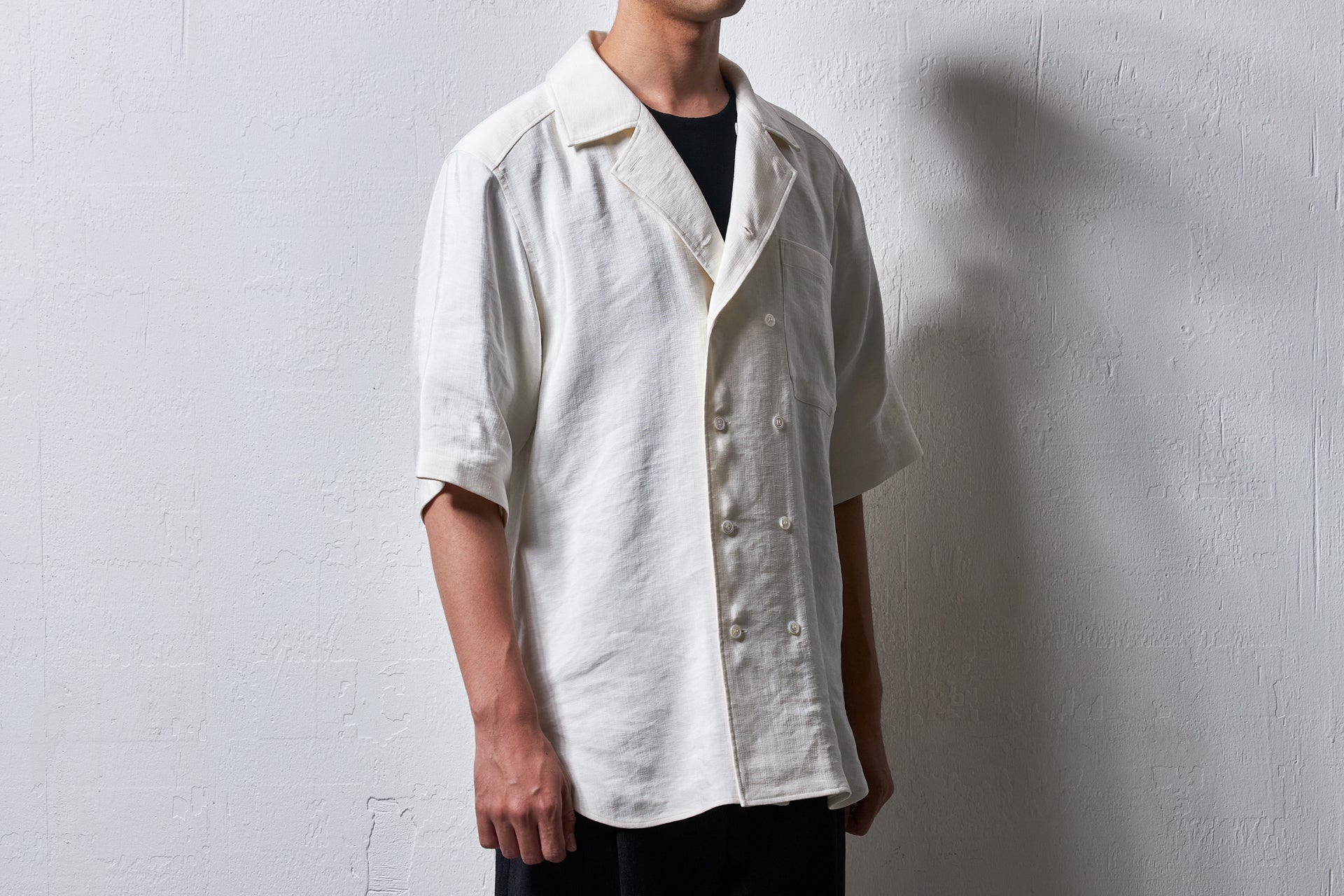 26146-sili/ビンテージシルクリネン・ダブルオープンカラーショートスリーブシャツ -off white