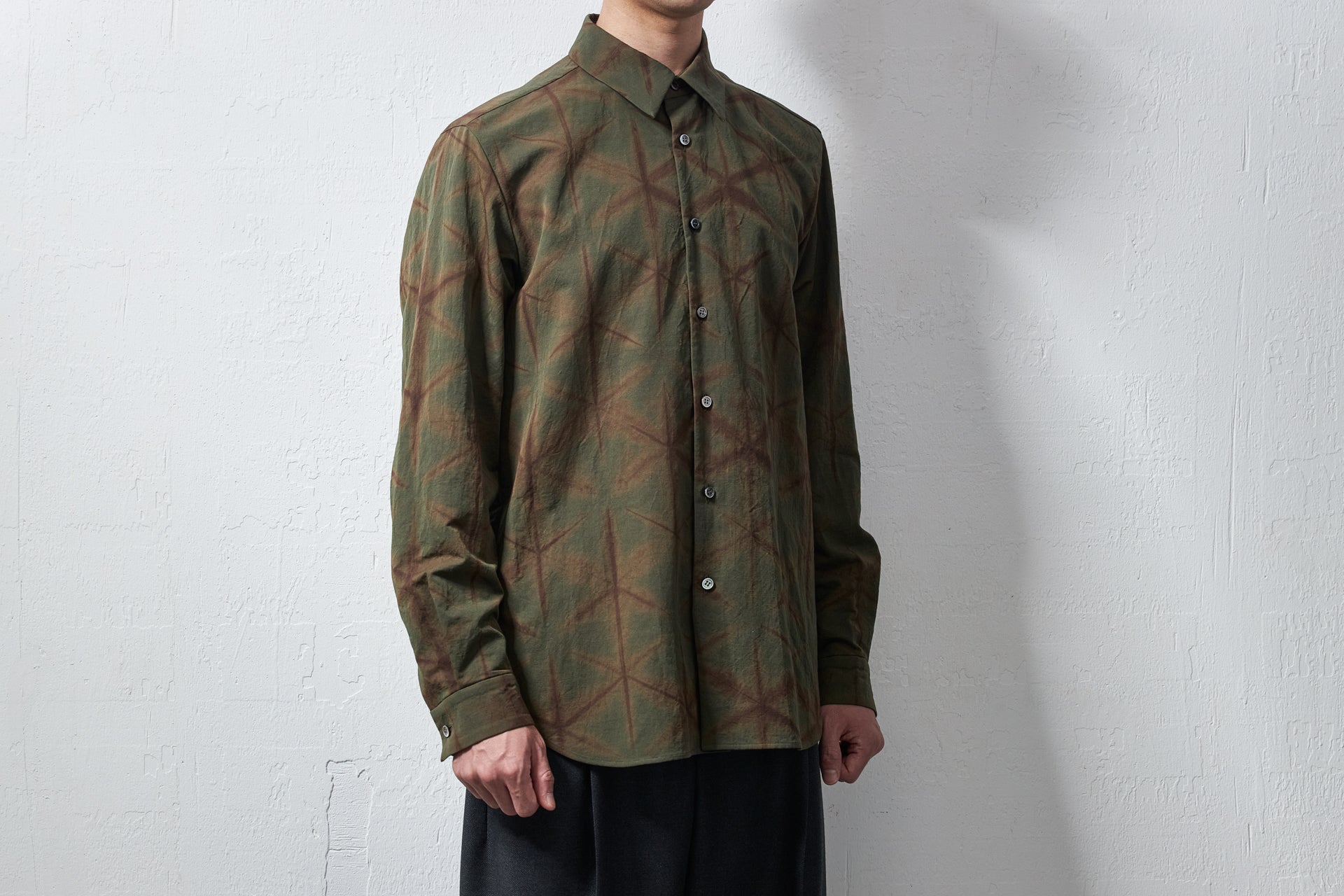 A one-of-a-kind piece that makes full use of traditional Japanese craft techniques. A new Arimatsu Shibori pattern created specifically for the Yamauchi brand. Only one size is available.
