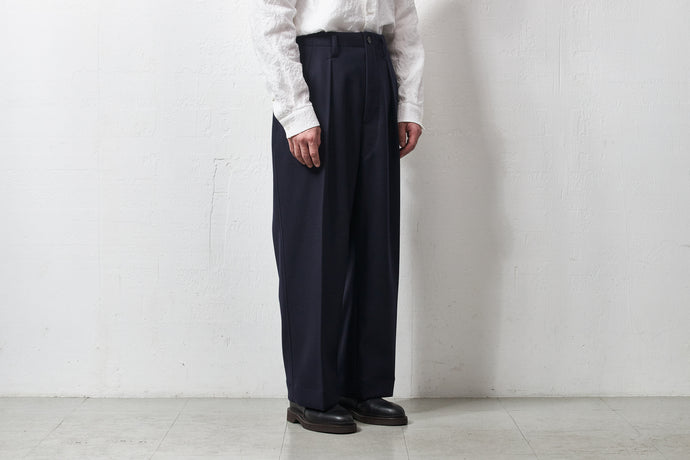 yc64-252 / ヘビーウールツイル・サイドシームレスワンタックパンツ -dark navy