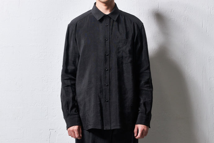 26143-sili/ビンテージシルクリネン・ダブルステッチシャツ-sumi kuro